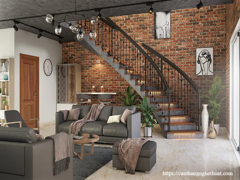 Để tăng tính thẩm mỹ và hiệu ứng ánh sáng, hệ thống đèn LED âm có thể được tích hợp dọc theo chiếu nghỉ hoặc bậc thang. Điều này không chỉ làm đẹp không gian mà còn giúp người dùng di chuyển an toàn hơn vào ban đêm.