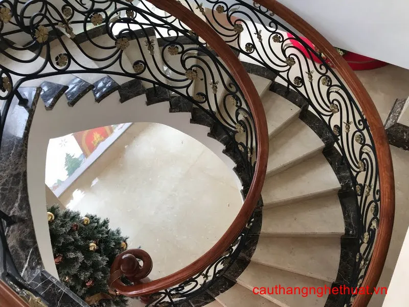 Mẫu Cầu Thang Bê Tông Xoắn Ốc Ốp Đá Marble